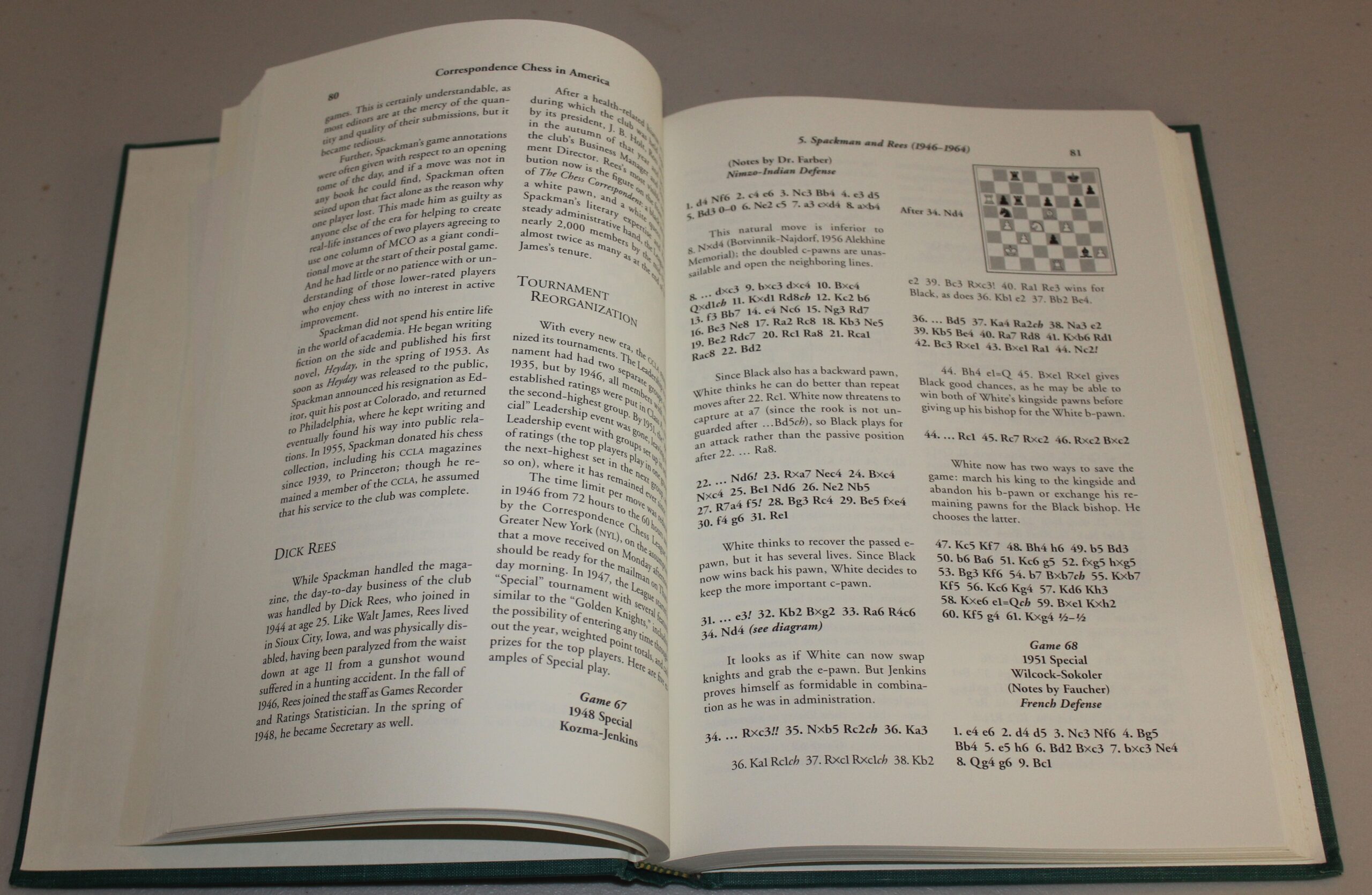 This is an historical overview and detailed analysis of American correspondence chess from the 1840s to about 1999. Particular attention is paid to the Correspondence Chess League of America (CCLA), the oldest correspondence chess organization in America and the second oldest in the world. Also included are comparisons of American postal chess play to that of other nations; discussions of the United States Postal Chess Federation, which runs the national championship and encompasses most major American clubs; and biographies of America’s two World Correspondence Chess Champions. Over 200 illustrative games are included with diagrams. Appendices cover the CCLA rating system, adjudication, the Russian system, and winners of selected tournaments. A bibliography provides opportunities for further research and indexes cover players, game openings, and general topics.