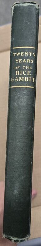 253 pages are devoted to analysis and variation from practical play. The remainder deals with the history of the Gambit and the various contest in which it was exclusively used; includes tributes to Professor Rice. Parts of the text appeared in previous editions. The Rice Gambit is a chess opening that arises from the King’s Gambit Accepted. An offshoot of the Kieseritzky Gambit, it is characterized by the moves 1. e4 e5 2. f4 exf4 3. Nf3 g5 4. h4 g4 5. Ne5 Nf6 6. Bc4 d5 7. exd5 Bd6 8. 0-0 (instead of the normal 8.d4). White offers the sacrifice of the knight on e5 in order to get his king to safety and prepare a rook to join the attack against Black’s underdeveloped position. The Rice Gambit was heavily promoted by wealthy German-born, American businessman Isaac Rice towards the end of the 19th century. He sponsored numerous theme tournaments where the diagram position became the starting point of every game played. Such giants of the chess world as Emanuel Lasker, Mikhail Chigorin, Carl Schlechter, Frank Marshall, and David Janowski were among the participants. These events stretched from Monte Carlo, Saint Petersburg, and Ostend, to Brooklyn and Trenton Falls. In a 1905 Pillsbury National Correspondence Chess Association event, 230 amateurs played the gambit by mail. So obsessed was Rice with his pet line, he formed The Rice Gambit Association in 1904, at his home in New York. With Dr. Lasker as Secretary, the Association even published a book of all the games played in the theme tournaments.